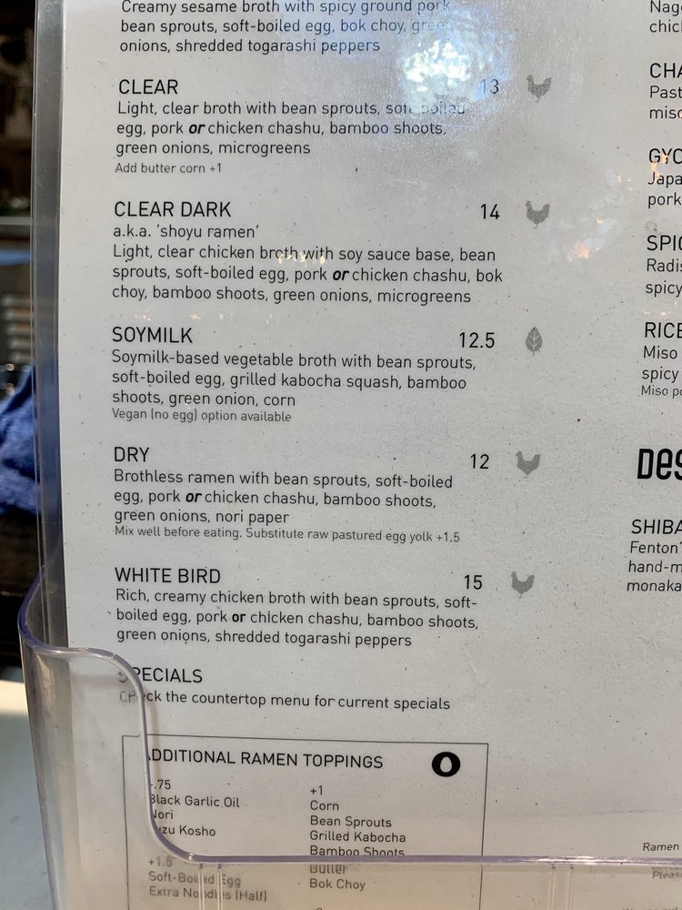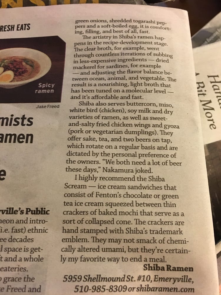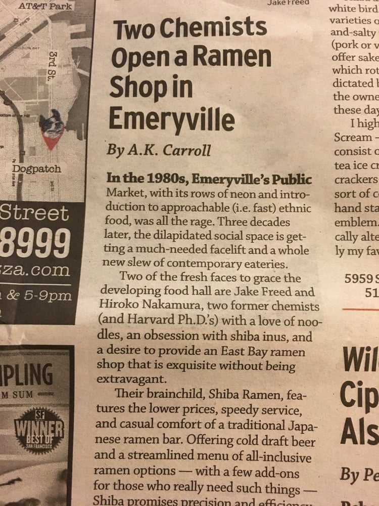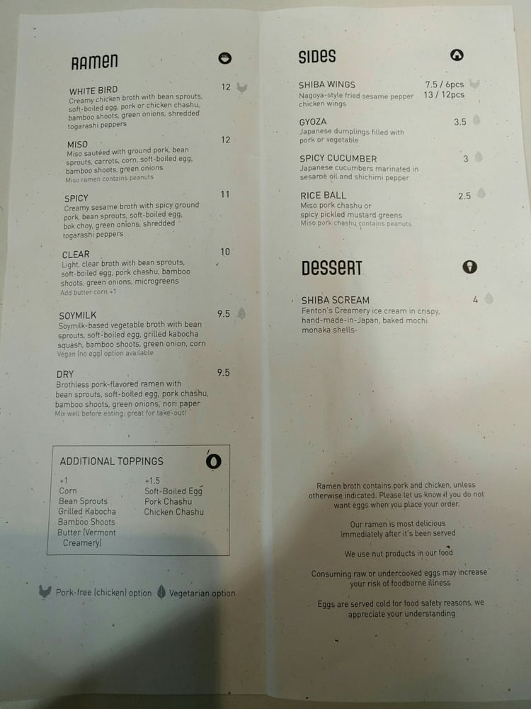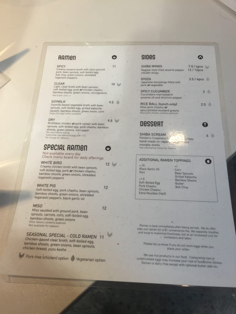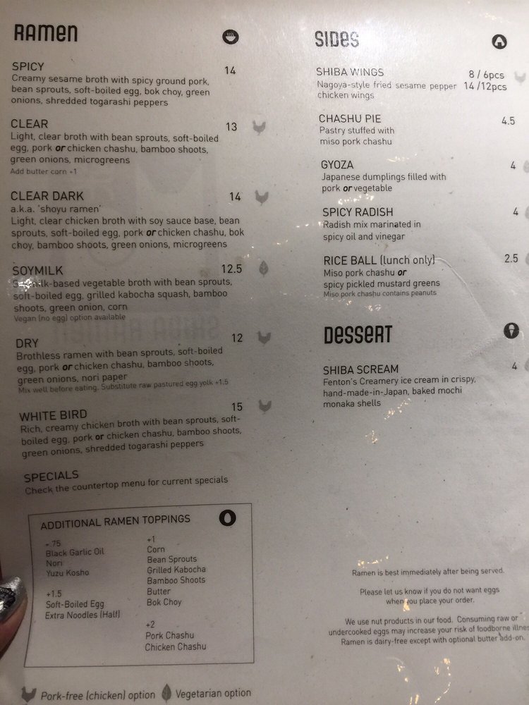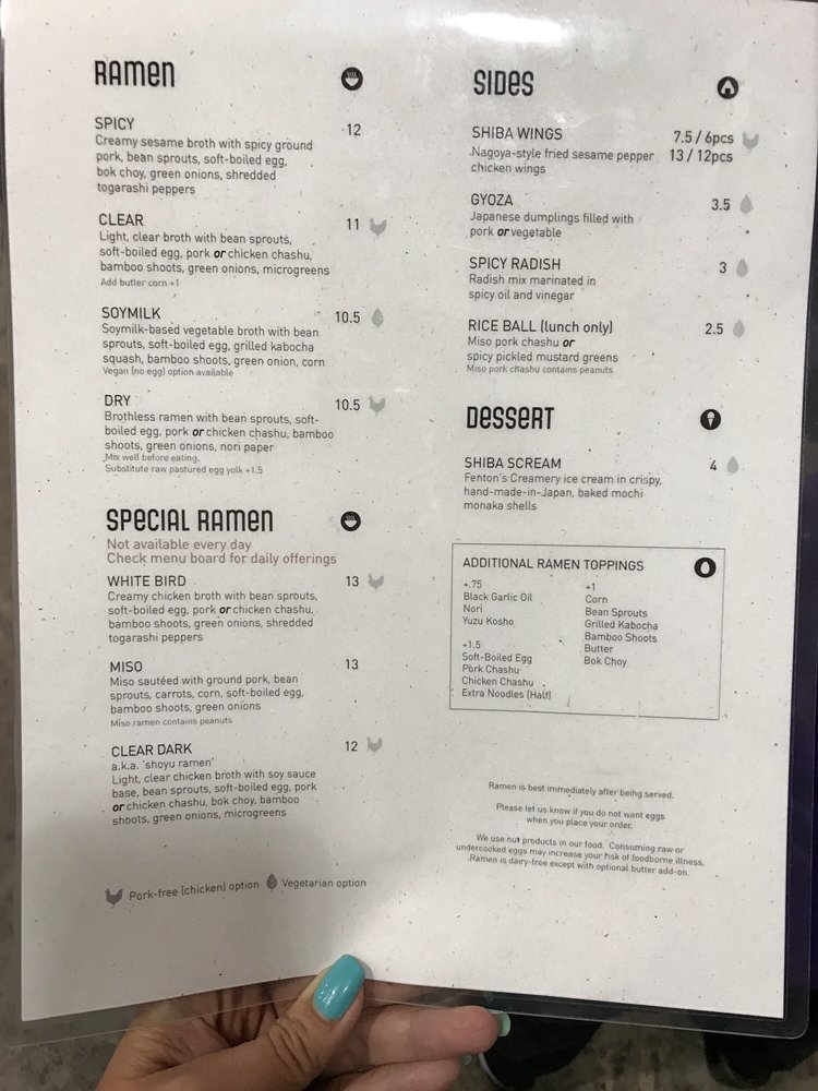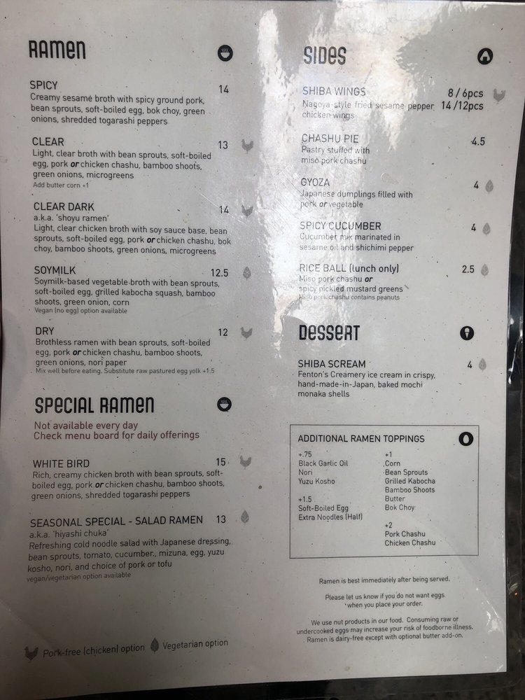 Shiba Ramen, located in Emeryville, offers a diverse menu with options for vegans and limited vegetarian choices. Customers praise the flavorful broth and unique noodle textures. The atmosphere is described as hipster-casual, making it perfect for groups and families. The ramen dishes are a favorite, with highlighted items like the soy milk-based Ramen and the spicy clear broth ramen. Reviews also appreciate the efficient self-ordering system and friendly service. Parking is convenient with a private lot available. Overall, Shiba Ramen stands out for its delicious offerings and cozy dining experience, making it a must-visit for ramen enthusiasts looking for a satisfying meal in a vibrant setting.